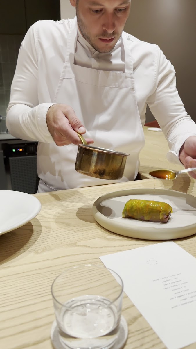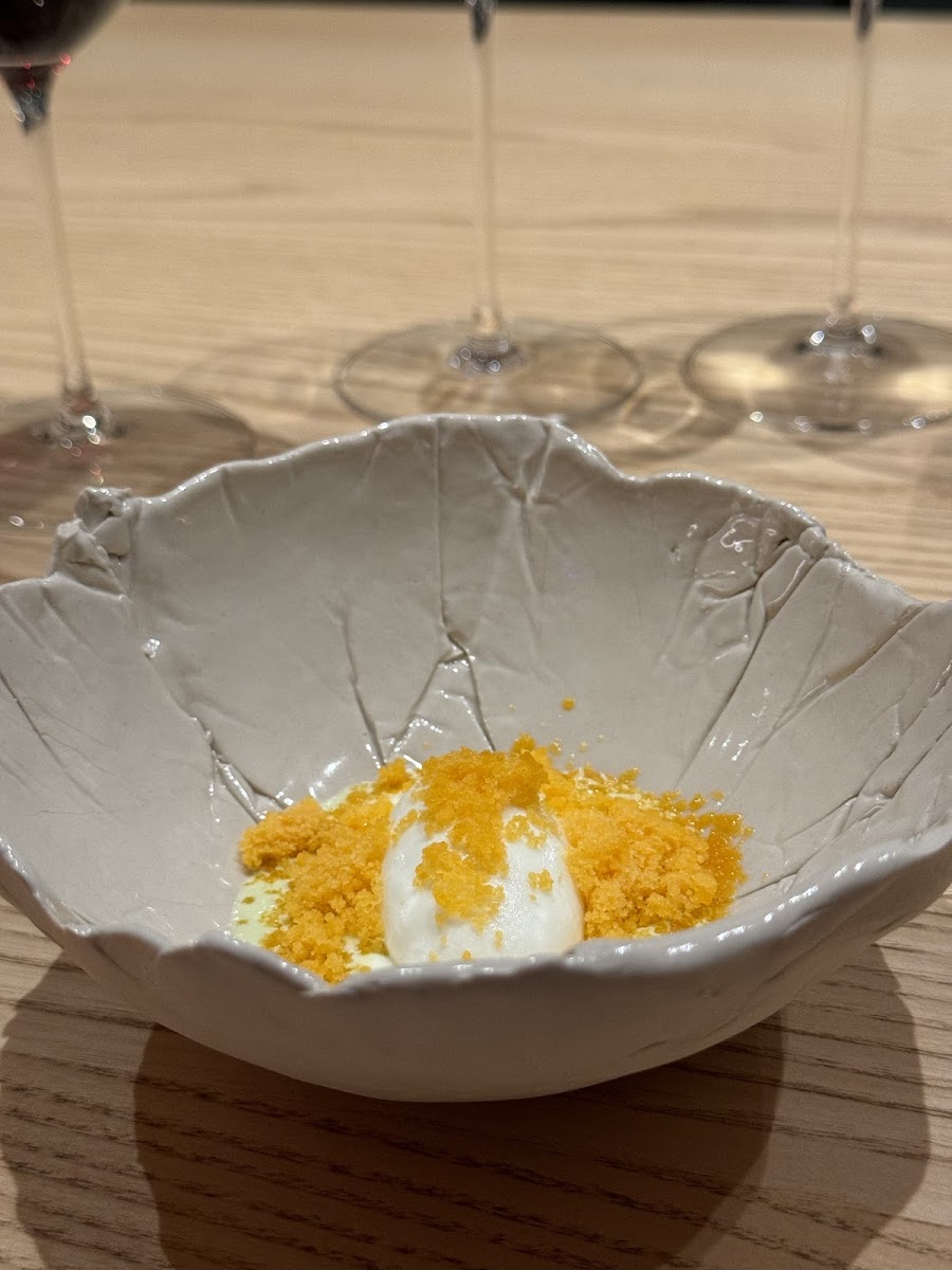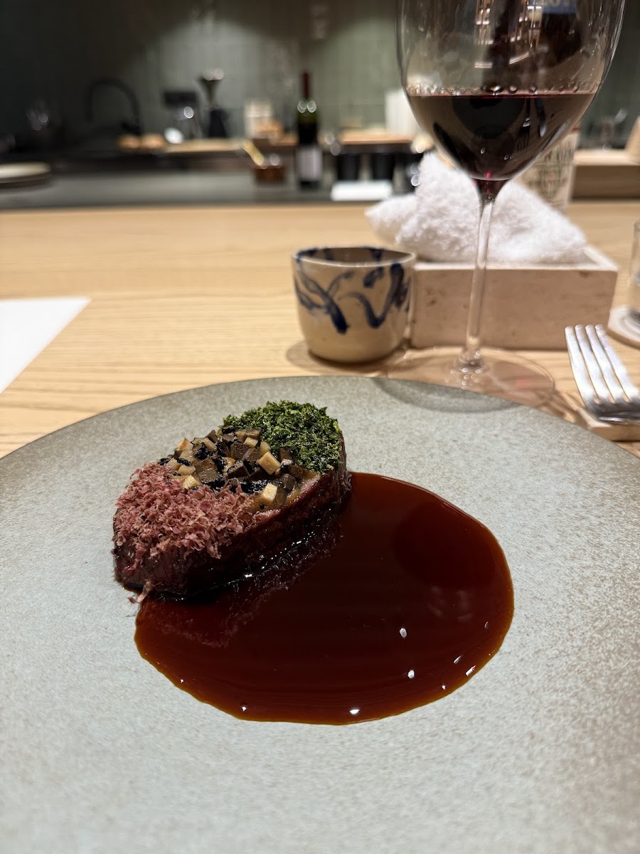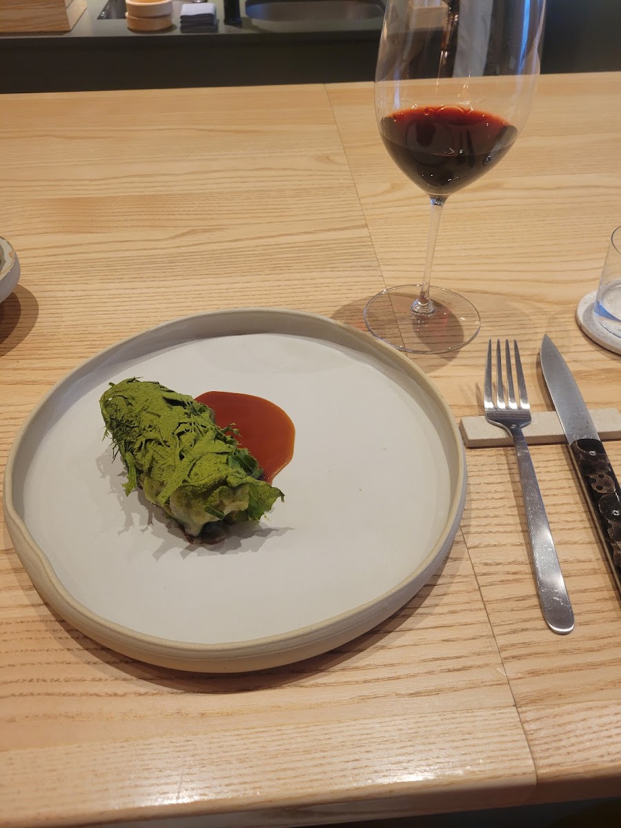 I feel bad giving a 4-star review, because 7 out of the 9 dishes were amazing — some more than others, but all truly impressive. Unfortunately, the two mains (cod and the steak) were just far too salty. So salty, in fact, that I couldn’t taste anything else, which was a real shame considering the ingredients were clearly of the highest quality. I appreciate all sorts of combinations when it comes to food, but I firmly believe that the ingredients should speak for themselves, and not the seasoning. Appetizers were out of this world. I would skip the wine pairing — at €90 for 4 glasses, it simply isn’t justifiable. On the other hand, the non-alcoholic pairing was fantastic. The atmosphere and staff were wonderful — I’d describe it as “France meets Japan” when ti comes to the design of the restaurant, and the vibe was unpretentious (which we really appreciate). Plating and presentation were spectacular — a true 10/10. Had the two mains not been so overly salted, it would have been a perfect 9-course meal. It’s more than just dinner — it’s a full experience, and we had a beautiful time overall. I do highly recommend it.